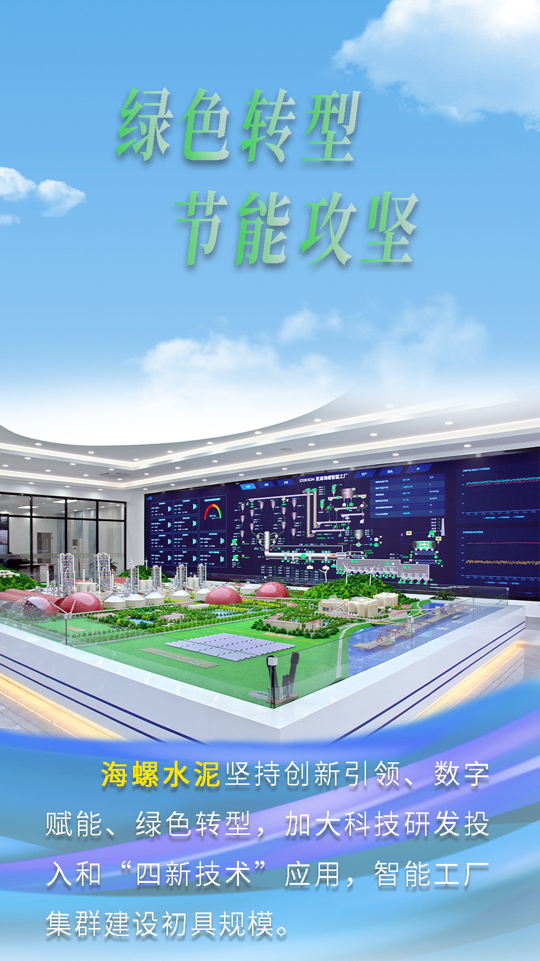 今天跟隨海報(bào)畫面鏡頭,一起來了解海螺水泥“綠色轉(zhuǎn)型,節(jié)能攻堅(jiān)”的故事。