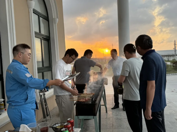 滋滋作響,香味彌漫,為國慶佳節(jié)帶來了“人間煙火氣”。帶上你對美食的獨到見解,來到荻港海螺、海門海螺新材料公司,親手做出一份讓人食指大動的燒烤吧!從串簽、刷油,再到調(diào)料、翻面,員工們自己動手,互“鑒”美食,在歡快的氛圍中放松身心,享受假期。