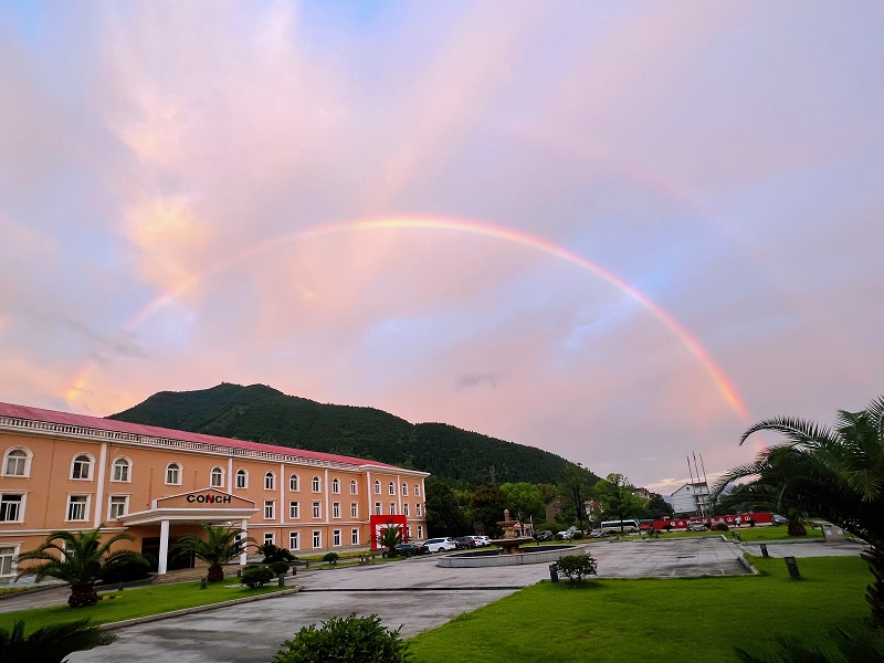 赤橙黃綠青藍(lán)紫,誰(shuí)持彩練當(dāng)空舞?雨后復(fù)斜陽(yáng),關(guān)山陣陣蒼……古往今來(lái),描寫(xiě)彩虹的詩(shī)詞有很多,而毛澤東的這首《菩薩蠻·大柏地》則以歡快的筆調(diào),描繪了一幅色彩斑斕的大柏地雨后的壯麗景色,抒發(fā)了作者的革命豪情。在海螺看到美麗彩虹,您會(huì)發(fā)出怎樣的感慨呢?