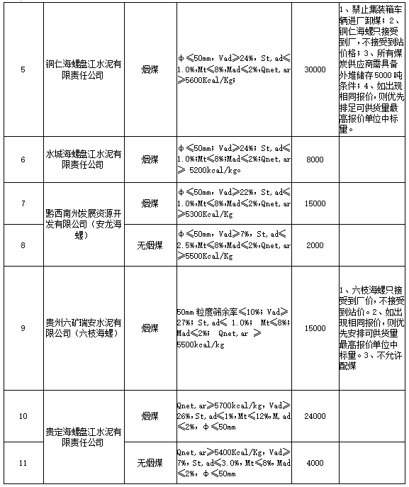1.煙煤新客戶首次投標(biāo)量不允許超過(guò)3500噸(原則上一個(gè)整列),無(wú)煙煤新客戶首次投標(biāo)量不允許超過(guò)5000噸,且均只能投標(biāo)一家海螺公司(2020年1月-2021年7月期間未向海螺水泥貴州區(qū)域形成實(shí)質(zhì)性煙煤、無(wú)煙煤供貨的客戶均視為煙煤、無(wú)煙煤標(biāo)的投標(biāo)新客戶),原則上投標(biāo)可供量不得小于3000噸,但考慮安龍海螺本次無(wú)煙煤僅招標(biāo)2000噸,因此安龍海螺無(wú)煙煤投標(biāo)量不予限制。