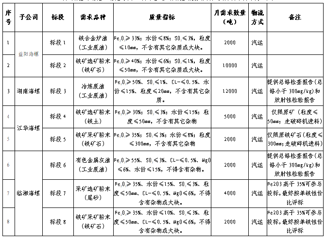1、標(biāo)的內(nèi)容:鐵質(zhì)材料(冶煉廢渣、鐵礦選礦粉末、鐵合金爐渣、有色金屬灰渣、鐵礦采礦粉末、采礦選礦粉末等);
