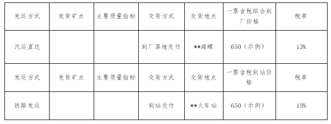 6.投標(biāo)礦點(diǎn)的煤質(zhì)需符合所投標(biāo)段煤質(zhì)要求,招標(biāo)方有權(quán)對投標(biāo)礦點(diǎn)進(jìn)行調(diào)研,若質(zhì)量不符合要求則取消投標(biāo)資格。