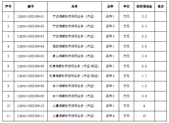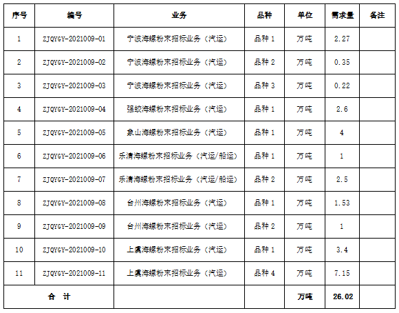 為進一步體現(xiàn)公平、公正、公開的原則,拓寬采購渠道,提高采購質(zhì)量,增強粉末保供安全性。浙江區(qū)域?qū)幉êB?、象山海螺、強蛟海螺、臺州海螺、上虞海螺、樂清海螺六家公司聯(lián)合對2022年一季度水泥生產(chǎn)所需的粉末采購進行公開招標(biāo),現(xiàn)將相關(guān)事宜公告如下: