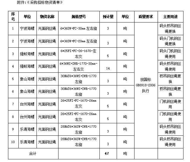 1、招標(biāo)項(xiàng)目名稱:光面鋼絲繩