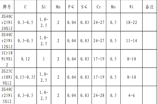注:根據(jù)相關設計院設計標準并考慮到國內(nèi)耐熱鋼廠家實際生產(chǎn)情況,其中Ni20按照18-22執(zhí)行。