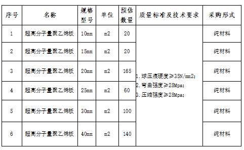 1.標(biāo)的物:超高分子量聚乙烯板(純材料/包工包料)。
