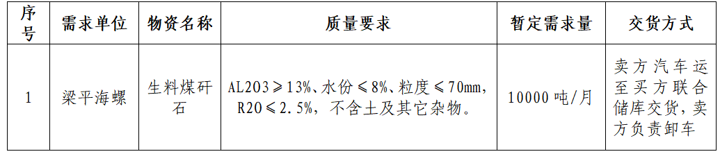 梁平海螺水泥有限責任公司擬對生料煤矸石組織采購招標,為進一步體現(xiàn)公平、公正、公開的原則,拓寬采購渠道,提高采購質(zhì)量,現(xiàn)將招標采購信息發(fā)布如下: