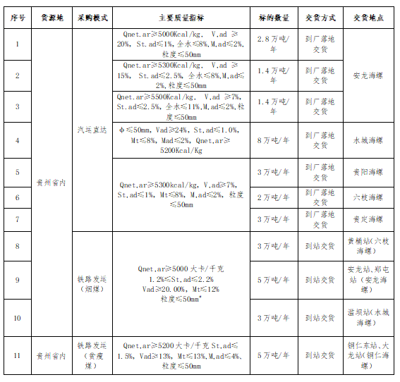 2.投標(biāo)人所提供礦點(diǎn)煤炭生產(chǎn)能力30萬噸/年以上(含30萬噸/年),礦點(diǎn)屬于貴州省內(nèi)資源;
