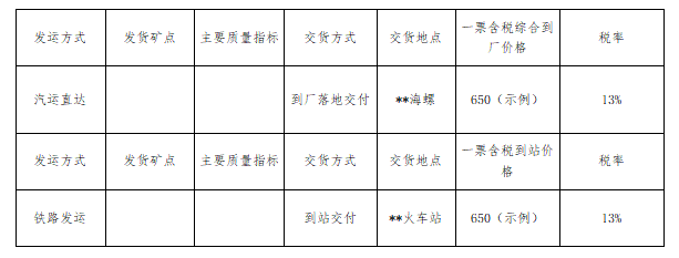 6.投標(biāo)礦點(diǎn)的煤質(zhì)需符合所投標(biāo)段煤質(zhì)要求,招標(biāo)方有權(quán)對投標(biāo)礦點(diǎn)進(jìn)行調(diào)研,若質(zhì)量不符合要求則取消投標(biāo)資格。