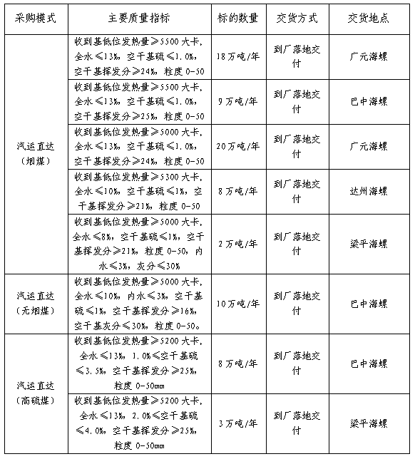 2.汽運(yùn)直達(dá)(高硫煤)定價(jià)原則:參照汽運(yùn)直達(dá)(煙煤)/鐵路直達(dá)年度長(zhǎng)協(xié)綜合到位價(jià)格為基準(zhǔn),折算成合同標(biāo)準(zhǔn)熱值標(biāo)準(zhǔn)后,下浮**元/噸(不得低于10元/噸,由投標(biāo)單位填報(bào))確定當(dāng)月煤炭供貨價(jià)格。