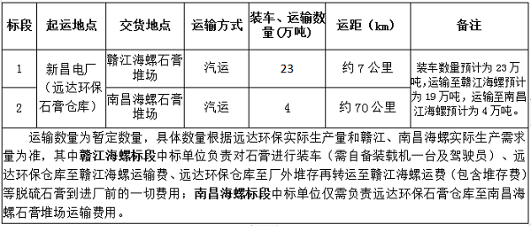 1.標(biāo)的內(nèi)容:脫硫石膏運(yùn)輸;
