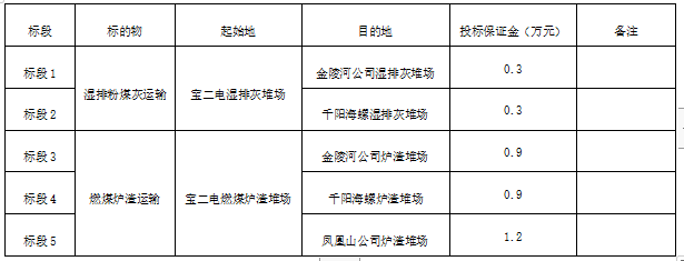 1.標(biāo)的物:寶雞二電廠濕排灰、燃煤爐渣運(yùn)輸。