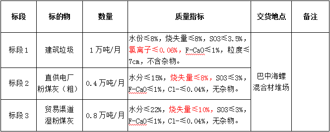 5.投標(biāo)報名單位需具有較強(qiáng)的保供能力,其中建筑垃圾月供貨能力不低于0.5萬噸;粉煤灰投標(biāo)渠道若為直供,不設(shè)置最低供貨量,若為貿(mào)易渠道,月供貨能力不低于0.3萬噸,且貿(mào)易渠道貨源不能為四川廣旺電力公司嘉川電廠、代池壩電廠和南江煤電公司粉煤灰資源。