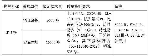 2、投標申請單位需提供具備礦渣粉供貨能力的證明材料(如直銷證明等),明確貨源所在地。