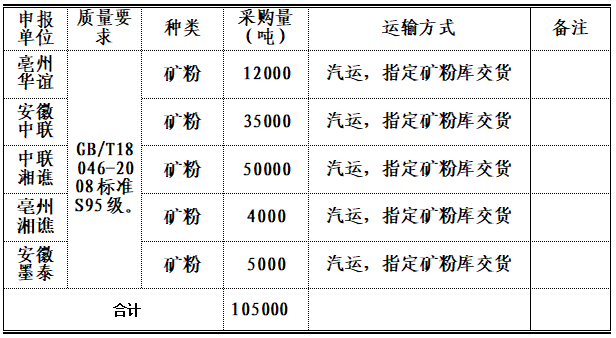 3.2022年4月至12月份礦粉計劃采購量10.5萬噸,具體如下: