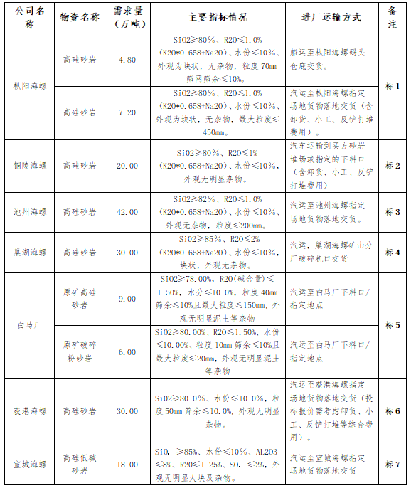 根據(jù)生產(chǎn)需求,本著“公開(kāi)、公平、公正”的原則,擬對(duì)省內(nèi)和皖北區(qū)域部分子公司外購(gòu)砂巖進(jìn)行公開(kāi)招標(biāo),歡迎具備條件的單位參加,現(xiàn)將招標(biāo)相關(guān)事宜公告如下: