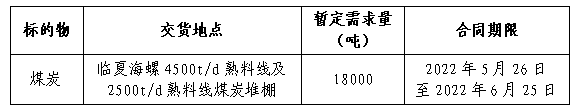 為做好我公司2022年6月份煤炭采購工作,滿足生產(chǎn)需要,本著“公開、公平、公正”的原則,擬對煤炭貿(mào)易渠道供貨進(jìn)行公開招標(biāo),現(xiàn)將招標(biāo)采購信息發(fā)布如下: