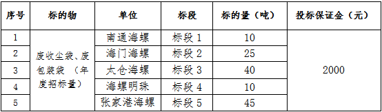 (一)標(biāo)的內(nèi)容:廢收塵袋、廢包裝袋等。