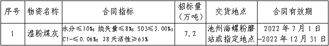 根據(jù)池州公司水泥生產(chǎn)經(jīng)營需求,安徽池州海螺水泥股份有限公司將對2022年7月1日-2022年12月31日合同期濕粉煤灰開展采購招標(biāo)工作,為進(jìn)一步體現(xiàn)公開、公平、公正的原則,現(xiàn)將相關(guān)事宜公告如下: