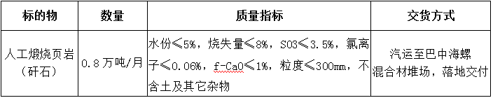根據(jù)巴中海螺生產(chǎn)經(jīng)營需求,現(xiàn)對2022年度水泥生產(chǎn)用人工煅燒頁巖(矸石)進行公開招標(biāo),本著公平、公正、公開、透明的原則,現(xiàn)將招標(biāo)相關(guān)事宜公告如下: