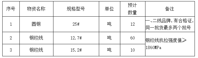 3.本次招標要求投標人公司經營范圍需涵蓋鋼材、金屬材料、預應力鋼絞線生產或銷售資質,具備獨立承擔民事責任能力。