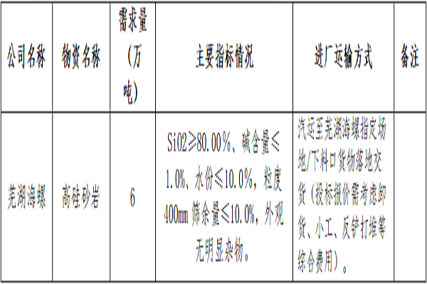 根據(jù)生產(chǎn)需求,本著“公開、公平、公正”的原則,蕪湖海螺供應(yīng)處擬對外購砂巖進(jìn)行公開招標(biāo),歡迎具備條件的單位參加,現(xiàn)將招標(biāo)相關(guān)事宜公告如下: