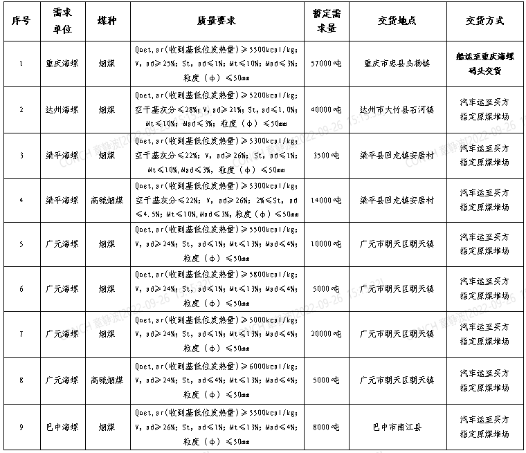 為進(jìn)一步提升煤炭采購招標(biāo)的公平、公正、公開透明性,根據(jù)區(qū)域2022年10月份煤炭需求,現(xiàn)組織開展煤炭采購網(wǎng)絡(luò)招標(biāo),特將招標(biāo)事宜公告如下: