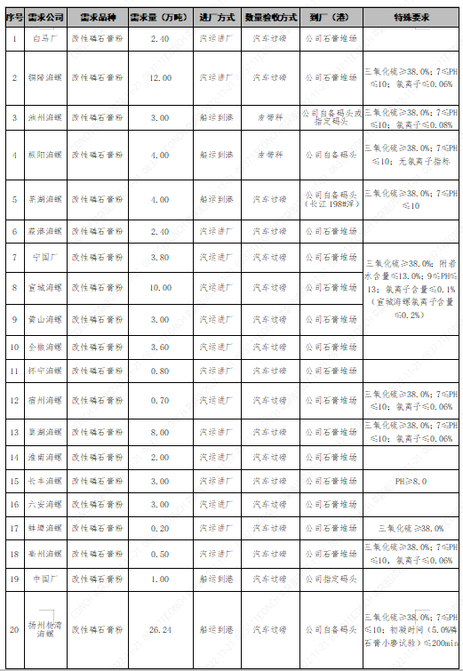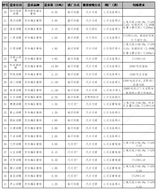 備注:需求單位共43家,需求量共172.07萬噸。