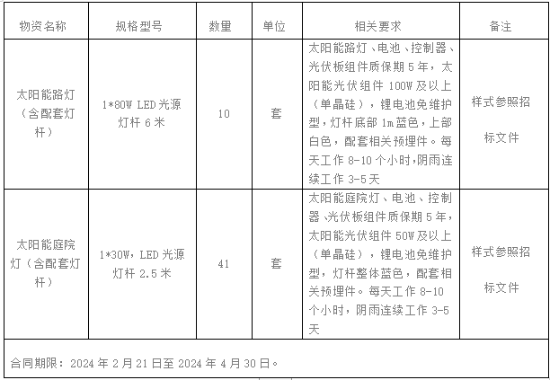 肇慶交投綠色石場(chǎng)有限公司簡(jiǎn)稱“德慶海螺”,擬對(duì)加工區(qū)辦公樓、宿舍樓區(qū)域太陽(yáng)能路燈、庭院燈進(jìn)行公開(kāi)招標(biāo)采購(gòu),為進(jìn)一步體現(xiàn)公開(kāi)、公平、公正、擇優(yōu)的原則,拓寬采購(gòu)渠道,保證采購(gòu)質(zhì)量,現(xiàn)將招標(biāo)采購(gòu)信息發(fā)布如下:
