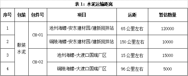備注:貨車(chē)、不走高速情況下的導(dǎo)航距離;池州海螺發(fā)運(yùn)42.5散裝和32.5散裝,銅陵海螺發(fā)運(yùn)52.5散裝。
