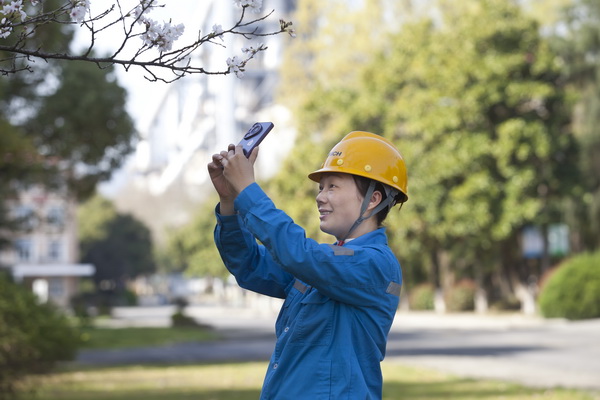 工業(yè)綠廊變身打卡勝地。清晨六點多,晨光穿透薄霧灑向廠區(qū)櫻花路,“錦繡大道”邊的十余樹櫻花已披上云霞般的輕紗。愛美的攝影人特意提前一個多小時到崗,手持相機(jī)捕捉光影變幻,路過的員工禁不住拿出手機(jī),拍攝這動人的春光,年輕的女職員們,在櫻花樹下,在綠草地上,擺出各種造型,誓要將美麗的春光留下。