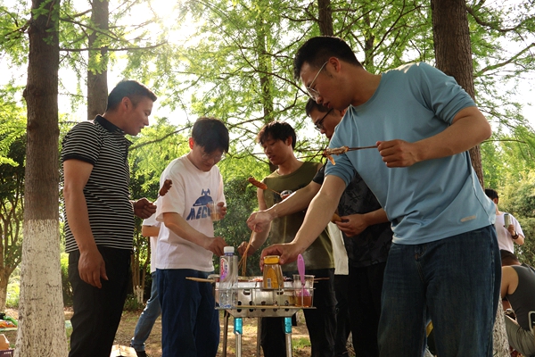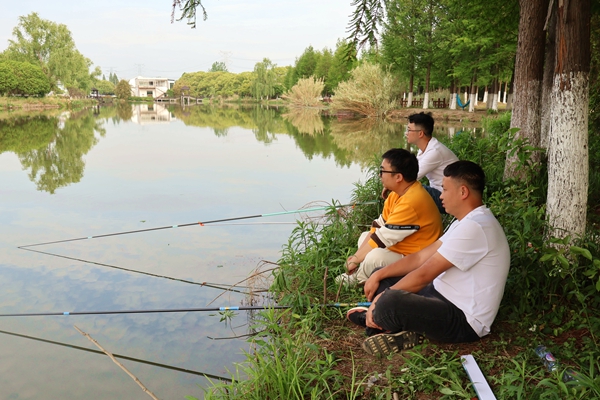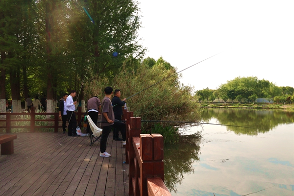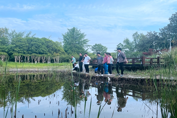 春天的西廬濕地公園草木豐茂、綠意盎然,到處氤氳著繁花和新苗的芳香。大家三五成群,或是漫步在林蔭道上,沐浴著透過香樟葉灑下來的稀松陽光;或是綁一個吊椅,欣賞著水杉林與藍(lán)天碧水構(gòu)成的美麗油畫;釣魚小分隊(duì)拎著裝備直奔河邊,尋找最佳釣位;水塘邊,大家用樹枝、細(xì)繩制作了簡易的工具,一場小龍蝦PK賽拉開序幕,引來眾多圍觀群眾。