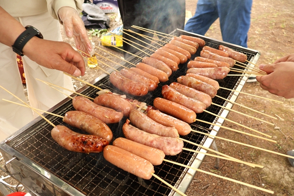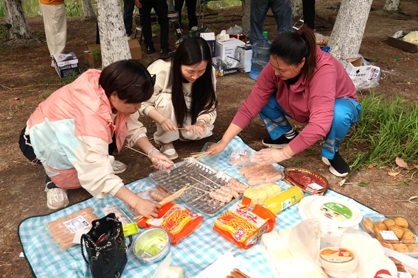 鯽魚、白條、小龍蝦都已就位,燒烤露營還能缺席?!心靈手巧的小伙伴們火速鋪好餐墊、串好食材、搭好烤架,“胡記燒烤”、“小高串串”、“阿武鐵板燒”等“五星商家”紛紛上線,為大家?guī)砹艘粓鲲柛故⒀纭?/span>
