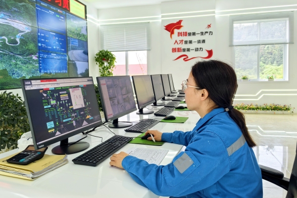 礦山分廠局控操作員李良瓊的視線在監(jiān)控屏幕間快速流轉(zhuǎn)。她左手同步更新生產(chǎn)數(shù)據(jù)臺賬,右手實時調(diào)節(jié)設(shè)備參數(shù),數(shù)字化看板上的綠色運(yùn)行曲線,見證著這位“工藝線守護(hù)者”護(hù)航設(shè)備高效運(yùn)轉(zhuǎn)的智慧。(胡萬禹/攝)