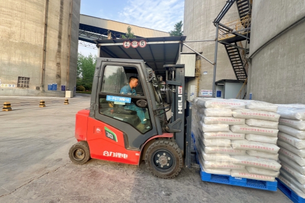 水泥分廠叉車司機(jī)胡順斌眼神正專注地望著倉庫內(nèi)堆積如山的托盤水泥,雙手熟練地操控著方向盤。每一次精準(zhǔn)的操作,都是為了更好地組織水泥發(fā)運(yùn)。(馮圣乾/攝)