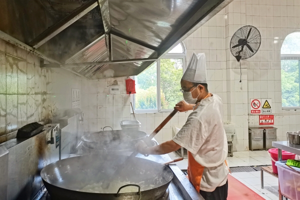 辦公室食堂廚師李晉濤正在制作全體職工午餐,他常說:“后勤保障工作很重要,現(xiàn)場職工太辛苦了,在‘能量補(bǔ)給’上面一點(diǎn)兒馬虎不得?!保盍?攝)