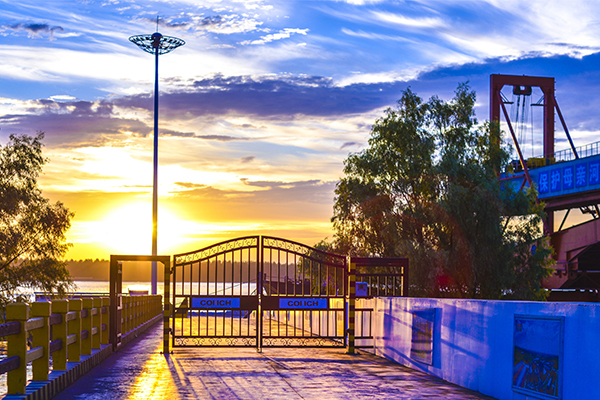 夕陽把碼頭鍍成一片金箔,遠(yuǎn)處長江的水流切開霞光浸染的水面,粼粼波光宛若撒落的碎鉆。
