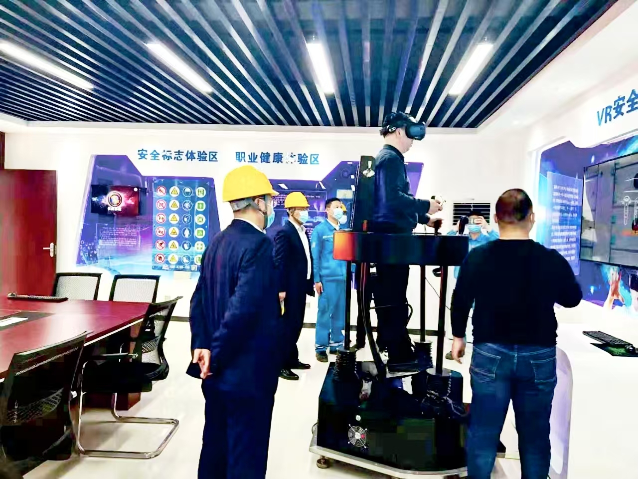 文化長(zhǎng)廊隔壁,是充滿科技感的安全警示教育室,VR體驗(yàn)、急救實(shí)操等設(shè)施一應(yīng)俱全。剛?cè)肼毜膯T工小林戴著眼鏡體驗(yàn)粉塵爆炸場(chǎng)景:當(dāng)虛擬空間中粉塵濃度飆升、警示燈爆閃的瞬間,座椅突然劇烈震動(dòng),仿佛身臨其境?!疤鸷沉耍嚷犑沃v座都管用?!闭卵坨R的他仍心有余悸,“以后每次進(jìn)入粉塵區(qū)域,都會(huì)自覺(jué)檢查防塵口罩密封度?!毙聠T工需在此完成24小時(shí)以上的安全培訓(xùn)方可上崗。