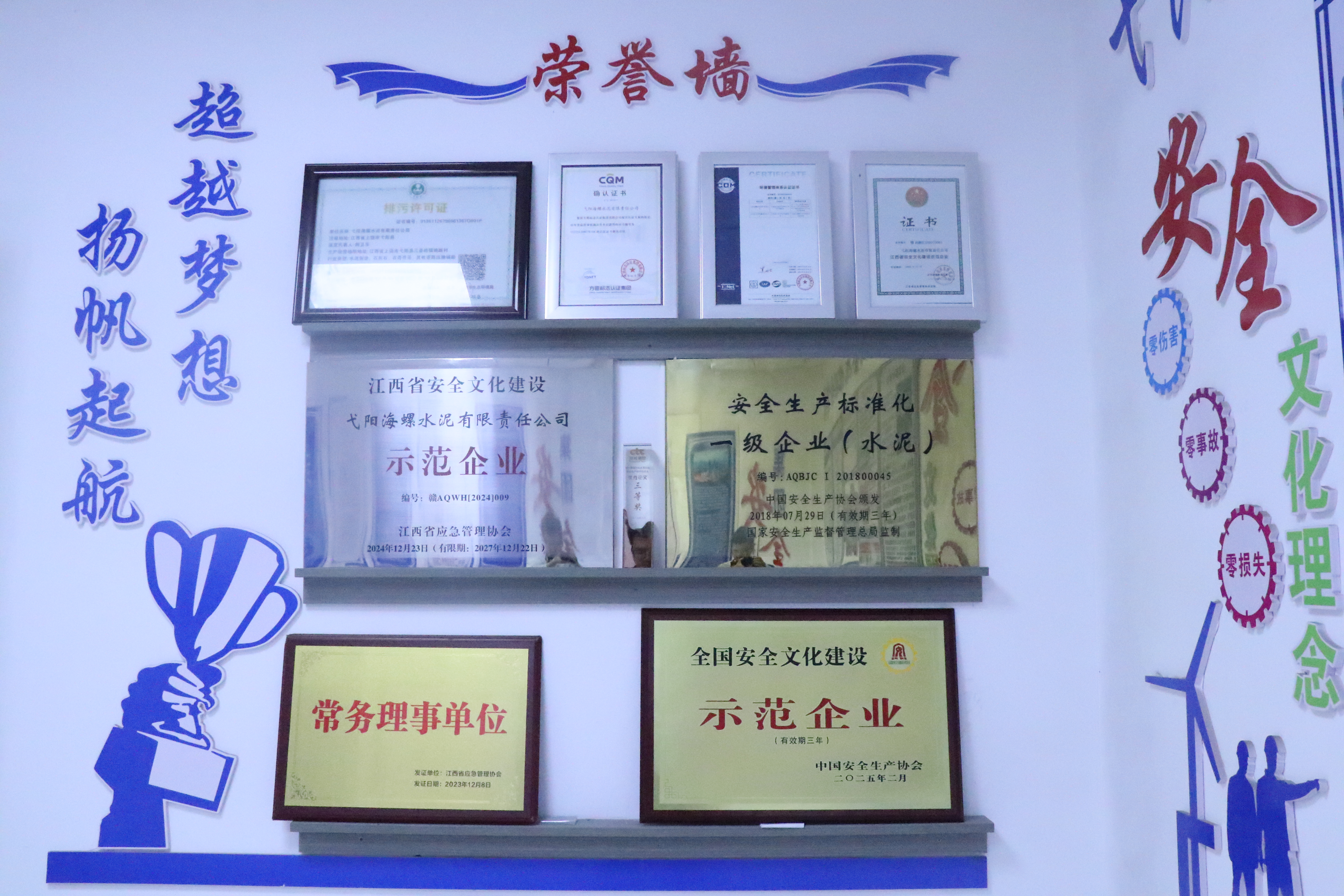 在弋陽(yáng)海螺安全榮譽(yù)墻,“安全生產(chǎn)守信聯(lián)合激勵(lì)‘紅名單’企業(yè)”、“全國(guó)產(chǎn)業(yè)工人隊(duì)伍建設(shè)改革試點(diǎn)單位”、“國(guó)家綠色工廠”等一系列高含金量榮譽(yù),彰顯著安全文化建設(shè)的顯著價(jià)值與深厚底蘊(yùn)。同時(shí),依托扎實(shí)的安全文化建設(shè),隱患預(yù)警機(jī)制成功避免多次設(shè)備大修,減少損失約1000萬(wàn)元;連續(xù)5年“零事故”的紀(jì)錄更獲金融、保險(xiǎn)領(lǐng)域青睞,通過(guò)授信提升、費(fèi)率下浮降低運(yùn)營(yíng)成本,實(shí)現(xiàn)“降本增效”與榮譽(yù)雙豐收。