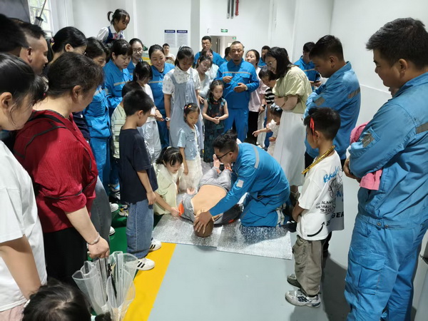 沉浸式體驗(yàn)爸爸的工作日常,走進(jìn)爸爸的“第二個(gè)家”。家屬們?cè)诠S講解員的帶領(lǐng)下,先后參觀了企業(yè)工廠廠史館、中控操作室以及安全實(shí)訓(xùn)基地。在廠史館,10歲的果果眼里寫滿新奇,“這是什么,那什么”問個(gè)不停,當(dāng)她發(fā)現(xiàn)工廠成長照片墻上爸爸的身影時(shí),興奮著指給旁邊的媽媽看;在心肺復(fù)蘇假人模擬操作環(huán)節(jié),8歲的小小男子漢大樹在爸爸的手把手教學(xué)下,一邊數(shù)著“1、2、3……”一邊認(rèn)真地給假人模型做按壓式心肺復(fù)蘇。這種沉浸式體驗(yàn)不僅讓孩子們觸摸到父親工作的溫度,還有對(duì)“爸爸為什么晚歸”的全新理解,更在稚嫩的心靈播下職業(yè)啟蒙的種子。