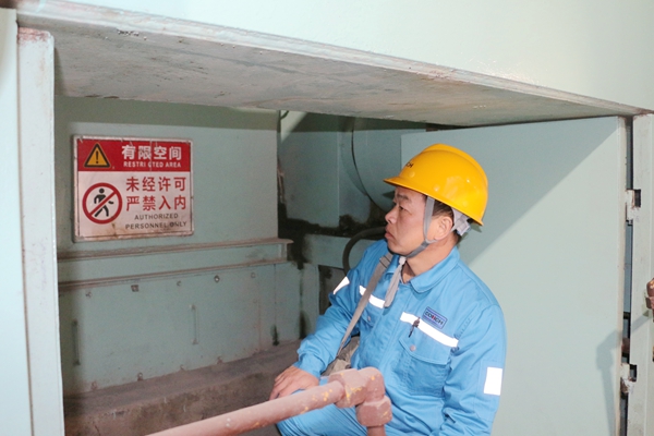 在這之后,孫林通的目光和腳步,先后三次回到這個(gè)位置。他俯身觀察,對(duì)比記錄,確認(rèn)滲水量雖然很小,但卻在持續(xù)地增加。他深知任何的疏忽或僥幸,都可能讓隱患在“再觀察一下”的拖延中升級(jí)。清晨六點(diǎn),當(dāng)滲水現(xiàn)象已轉(zhuǎn)為清晰可見的細(xì)流時(shí),孫林通果斷拿起對(duì)講機(jī),向上級(jí)進(jìn)行了清晰、準(zhǔn)確地匯報(bào):“4#輥壓機(jī)動(dòng)輥有載端滲水加劇,疑似內(nèi)部構(gòu)件異常,請(qǐng)設(shè)備人員立即現(xiàn)場(chǎng)確認(rèn)!”