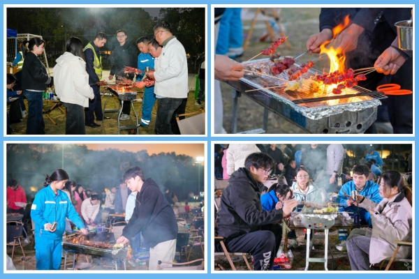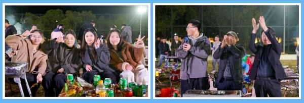 你看這邊的燒烤區(qū),雖伴著冬季傍晚的微涼,卻處處洋溢著火熱的氣息。員工們自發(fā)組成燒烤小隊,分工協(xié)作、默契配合,有人熟練翻轉(zhuǎn),精心控制火候讓食材能夠達(dá)到最佳風(fēng)味;有人熱情分發(fā)調(diào)料和飲品,不時揮舞著熒光棒配合樂隊的演出節(jié)奏。平時忙于各自崗位的員工都在此刻化身為“燒烤大師”,在炊煙裊裊與歡聲笑語中,彼此間的距離迅速拉近,交流也變得自然而融洽。