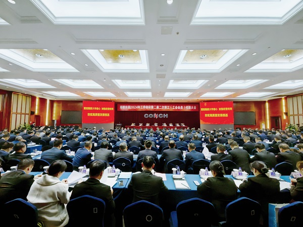 1月30日下午,海螺水泥在總部大廈三樓海螺廳召開了2024年工作會議暨二屆二次職工(工會會員)代表大會。總結(jié)2023年工作,部署2024年經(jīng)營目標(biāo)任務(wù)。公司班子、各區(qū)域、子公司主要負(fù)責(zé)人、部室負(fù)責(zé)人以及職工代表共290余人在蕪湖主會場參加了會議,各子公司其他班子成員及二級部門主要負(fù)責(zé)人以視頻連線方式參會。會議由公司副總經(jīng)理吳鐵軍主持。