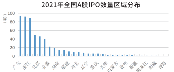 企業(yè)上市速度反映優(yōu)質企業(yè)成長速度。2021年,A股IPO市場火熱,全年共計524家上市公司IPO“沖A”成功。從新增來看,安徽2021年共新增22家上市公司,其中4家由新三板精選層“平移”至北交所,再創(chuàng)歷史新高。年度增量居中部第1位、全國第7位。其中,新增科創(chuàng)板上市公司7家,居全國第8位;新增注冊制下創(chuàng)業(yè)板上市公司6家,居全國第8位。