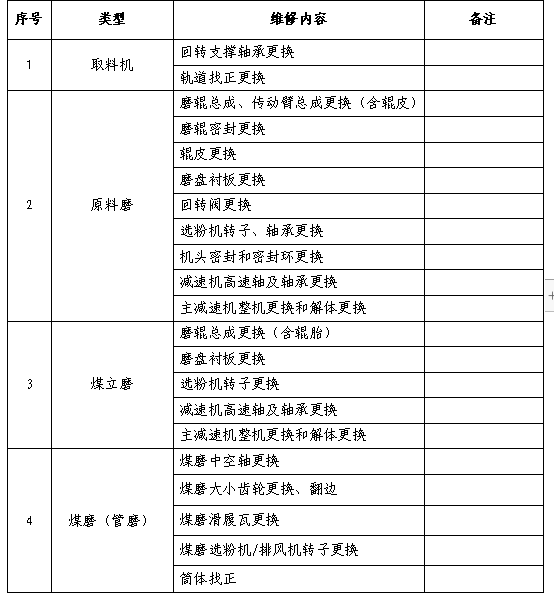 1.2 2020年7月1日至開標截止時間具有5000t/d及以上熟料生產(chǎn)線或100萬噸/年 粉磨站磨機成套設備安裝、維修業(yè)績(附合同及對應維修發(fā)票復印件)。