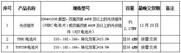 1、招標物資信息:光伏組件、電池片。