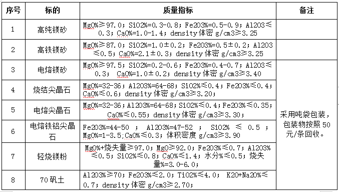 注:上述鎂質原材料必須為天然礦石制品,不得使用浮選等任何提純工藝生產的輕燒粉作為原材料。