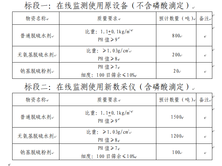 3.質量指標:滿足國家化工合格品相關質量控制標準,產(chǎn)品對設備無腐蝕,對熟料質量和正常生產(chǎn)無影響。同時預計招標人將在2024年2月份開始在線監(jiān)測使用新數(shù)采儀(含磷酸滴定),要求中標單位提前做好相關準備,屆時收到招標人正式通知后馬上啟動。