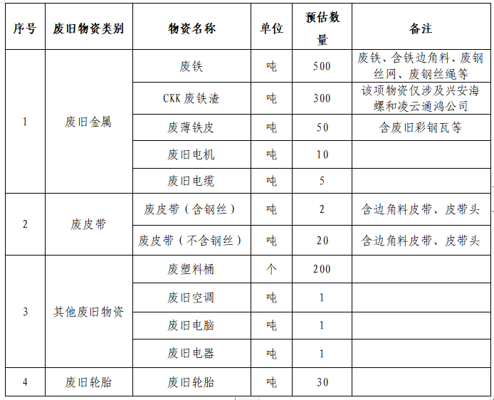 1.包含但不限于以上廢舊物資類別,同時數(shù)量僅為預(yù)估數(shù)量,具體數(shù)量以實際過磅或點(diǎn)數(shù)回收數(shù)量為準(zhǔn)。