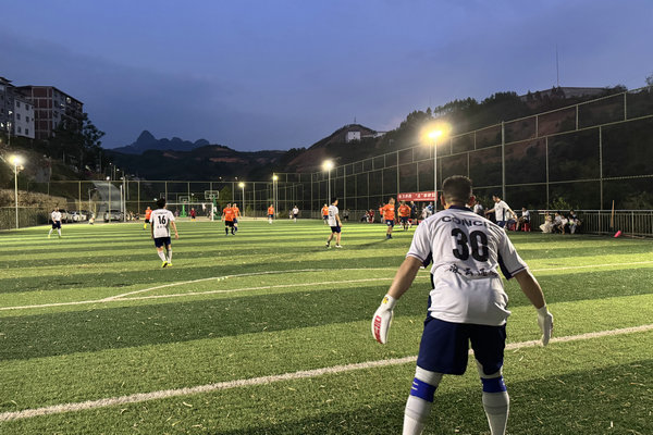 一聲聲吶喊,響徹球場,一場激情四射的足球友誼聯(lián)賽正在凌云縣伶站鄉(xiāng)足球場上演……